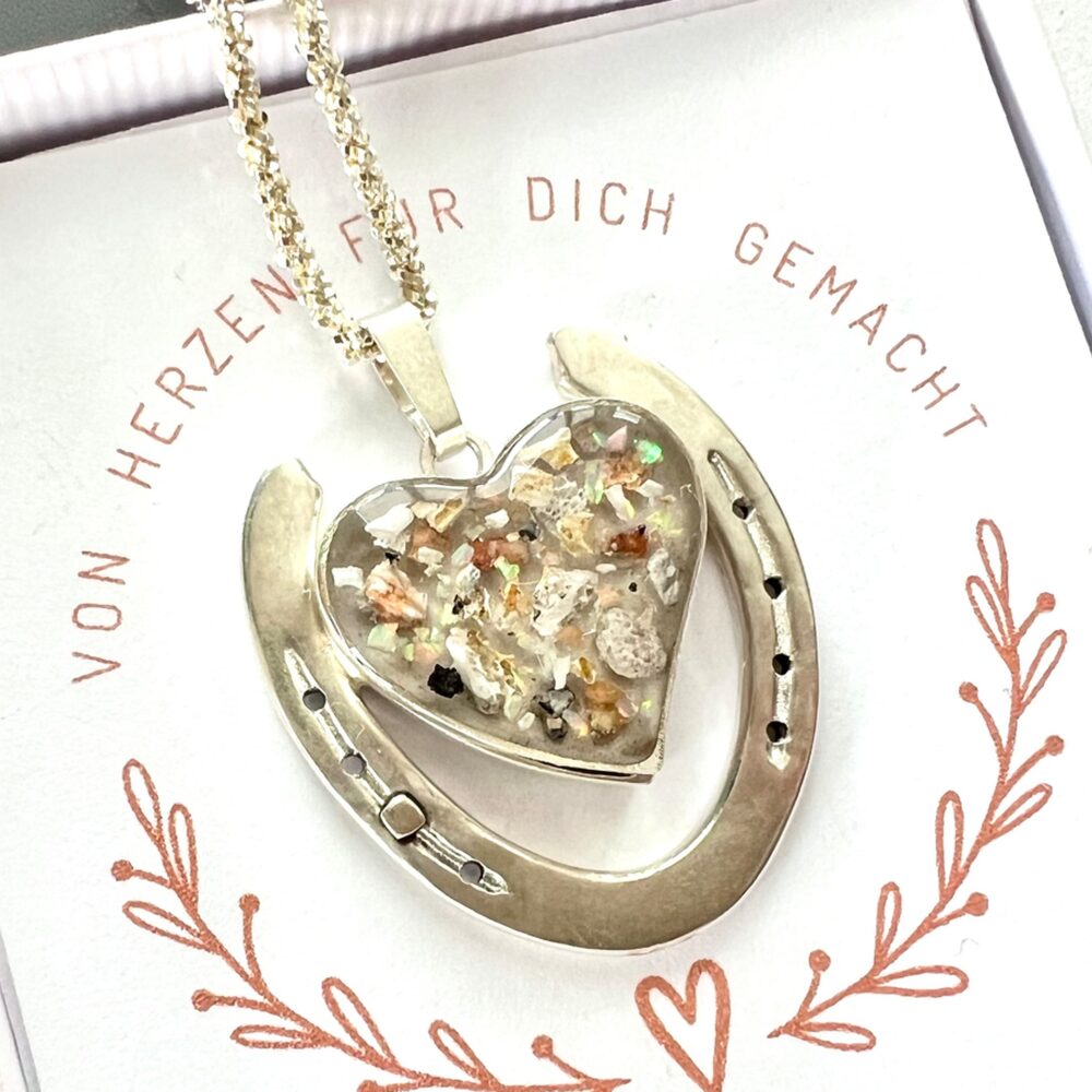 Erinnerung aus Pferdehaar oder Asche Kettenanhänger „Herz im Glück“